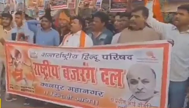 कर्नाटक में हिजाब को लेकर हो रहे विवाद पर सोशल मीडिया में पोस्ट करने के मामले में बजरंग दल कार्यकर्ता हर्षा की हत्या कर दी गई थी जिस पर अब विरोध पूरे देश में दिखाई दे रहा है इसी के चलते आज कानपुर में भी राष्ट्रीय बजरंग दल के कार्यकर्ताओं ने हर्षा की हत्या करने वालों को फांसी दी जाए इस मांग को लेकर जुलूस निकाल कर विरोध प्रदर्शन किया